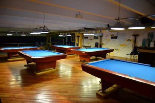 Al piano terra è presente il bar e la zona ristorante e pizzeria mentre al primo piano troviamo la sala biliardo composta da nove biliardi da pool americano (9 piedi, regolamentari omologati EPBF), un biliardo 5 birilli/carambola professionale e due calcio balilla professionali.
